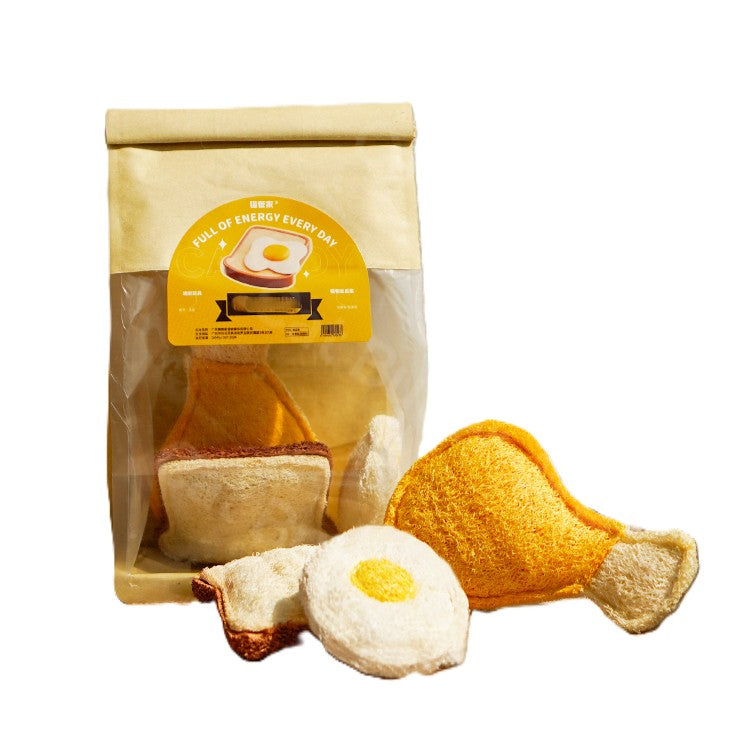 Start your cat’s day with a playful “breakfast”! The Cat Butler Eco-Friendly Loofah Cat Toy Set combines fun, safety, and natural materials in an irresistible package. Designed in cute breakfast shapes—like toast, fried egg, and chicken drumstick—these toys keep your kitty entertained while promoting healthy chewing habits.