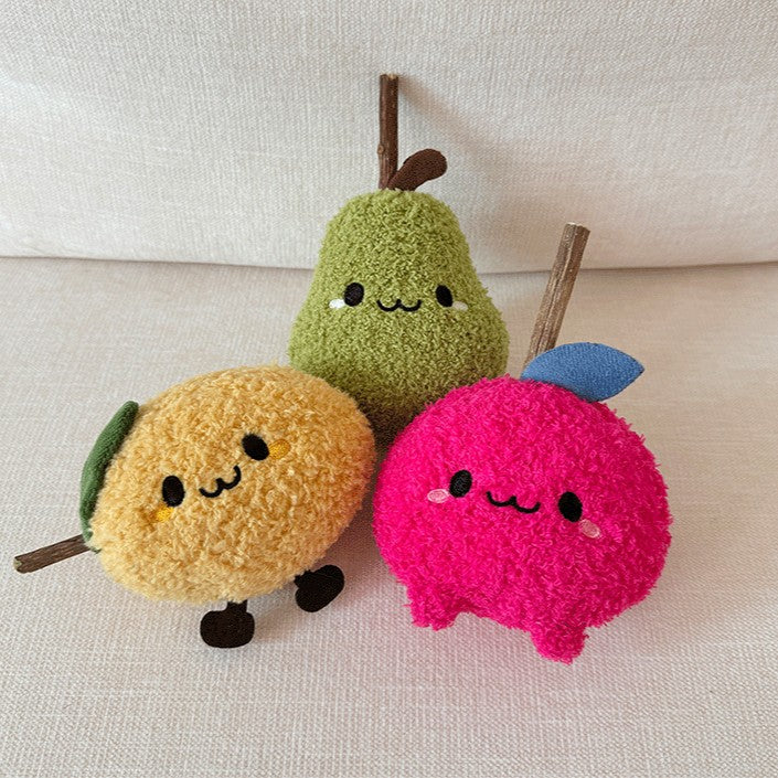 Adorable Fruit Design – Cute plush toys in fun pear, peach, and lemon shapes, perfect for interactive or solo play.