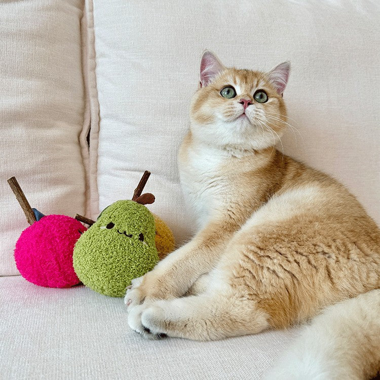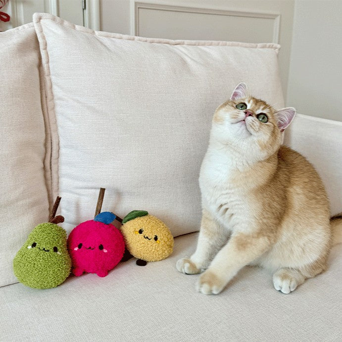 Give your cat endless fun and relaxation with the Fufu Cat Plush Toy infused with Silvervine (Matatabi). Designed in adorable fruit shapes like pear, peach, and lemon, these toys combine soft textures with the natural appeal of silvervine to keep your cat active, happy, and healthy.