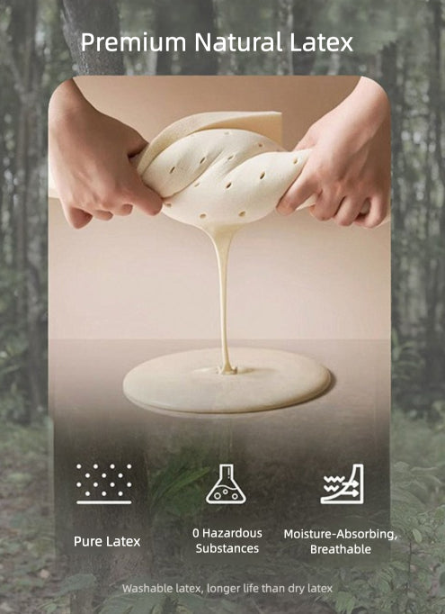 Fully filled with natural latex, offering soft yet resilient support that aligns with the spine. Designed with pressure-relief curves, it gently rebounds and returns to its original shape.