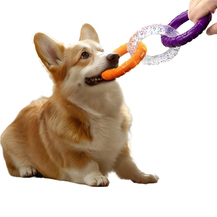 This toy is perfect for fetch, tug, or solo chewing. The linked rings make it easy for dogs to grab, shake, and carry, while also giving owners a comfortable grip for interactive play. It’s a great way to release energy, reduce boredom, and strengthen your bond with your furry friend.