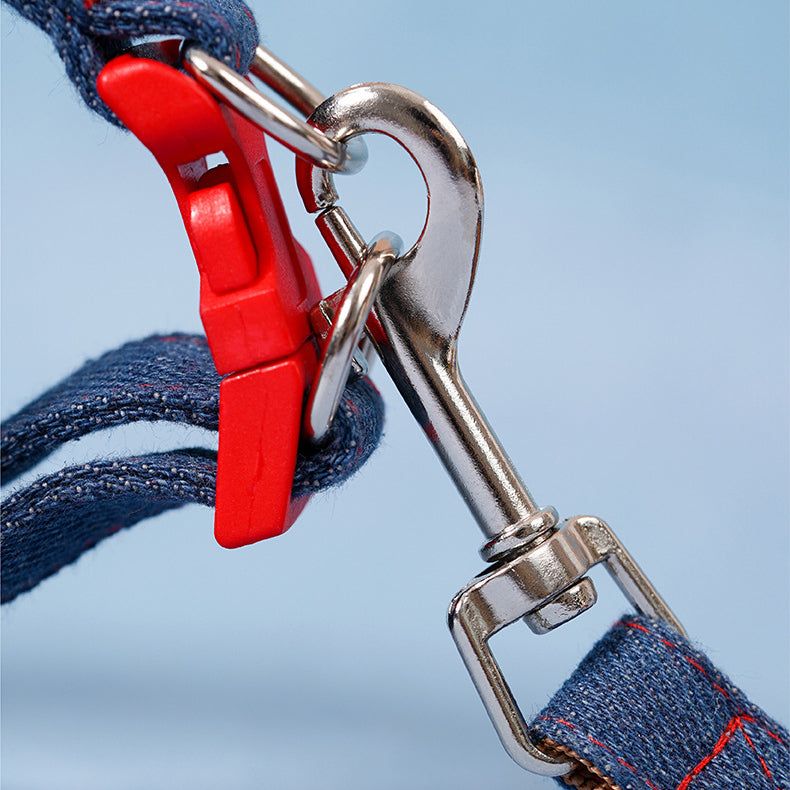 Fashionable Denim Look– Retro washed denim design makes your dog stand out on walks.